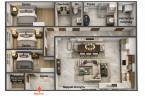 Praktikus elrendezésének köszönhetően tágas és világos terek jellemzik. A délelőtti napfény a nappalit és a konyhát világítja meg, a délutáni fények, pedig a hálószobákat érik.
