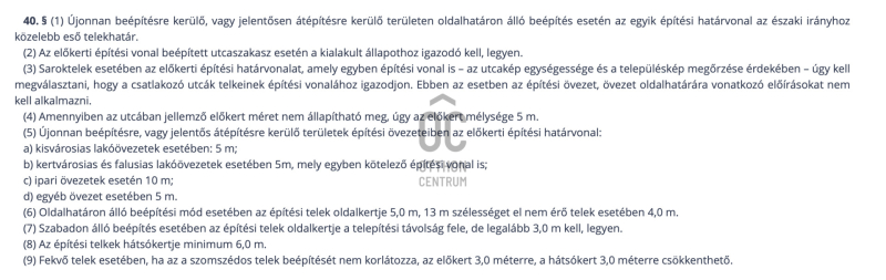 - Legnagyobb megengedett épület magasság: 6,5m