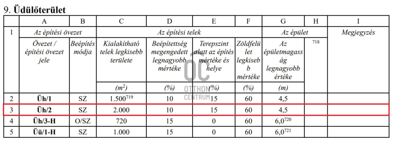 Építési övezet besorolása: Üh/2 (Hétvégi házas üdülőterület)