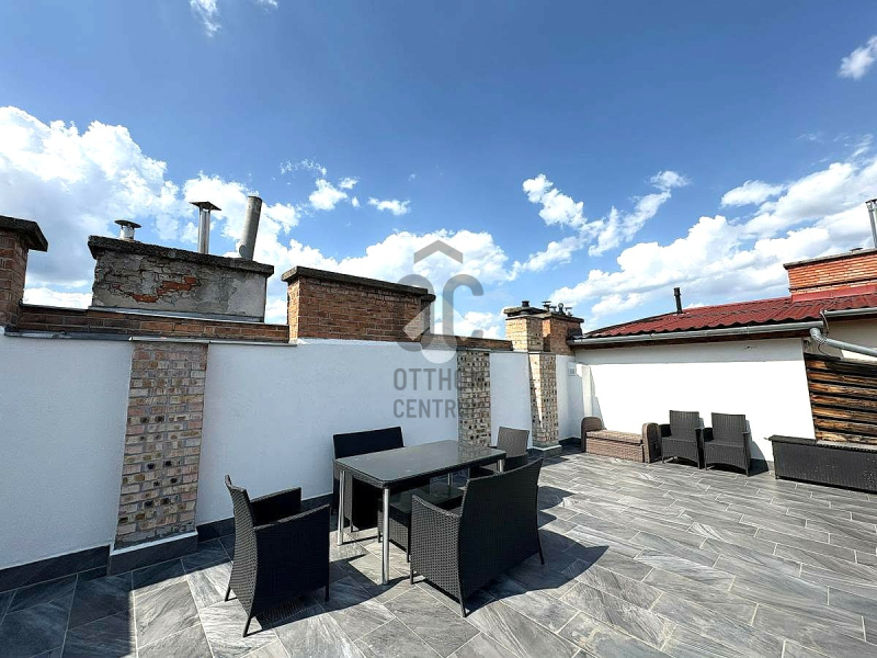 Belváros szívében Eladó két szintes, 78 nm-es, 3 szobás, gázcirkó fűtésű, déli fekvésű, exkluzív lakás +41 nm-es saját tetőterasszal, frissen felújított, liftes házban.