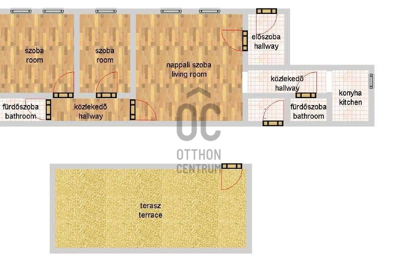 - 1 nappali + 2 külön nyíló hálószoba