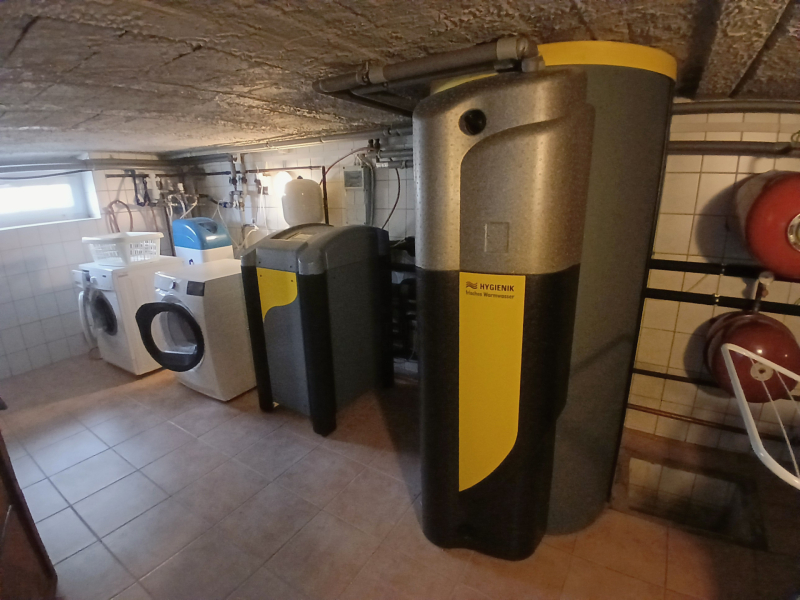 -HMV: 500 literes puffertartály, friss vizes átfolyós használati melegvíz készítéssel.