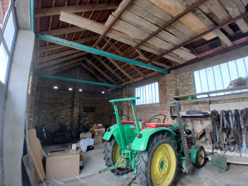 Továbbá 2, elektromos kapuval rendelkező garázs , egy fedett kocsibeálló és műhely is megtalálható.