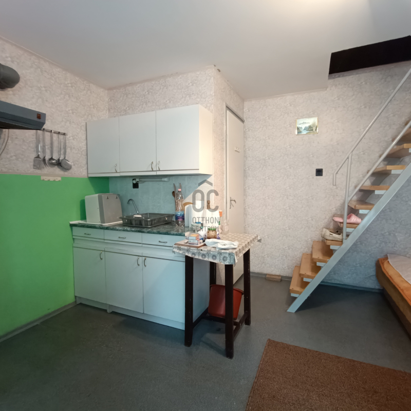 -a hátsó udvari ház: 30 m2 nagyságú: konyha-étkező-nappali, mosdó-WC került kialakításra, felső szinten hálószobával