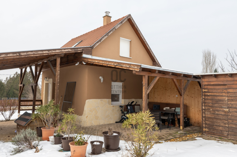 A házikó földszintjén található a konyha, a nappali és a fürdőszoba wc-vel, fent pedig a hálószoba és egy másik wc, valamint egy kis zug, ami gardróbnak vagy dolgozószobának ideális (és nem is olyan kicsi). Egy hangulatos, tágas, északkeletre tájolt terasz kínál árnyékos pihenést, amikor elbújnánk a nap melege elől, és a bejárat melletti kispadra akkor ülhetünk, amikor a déli tájolás adta meleg jól esik.