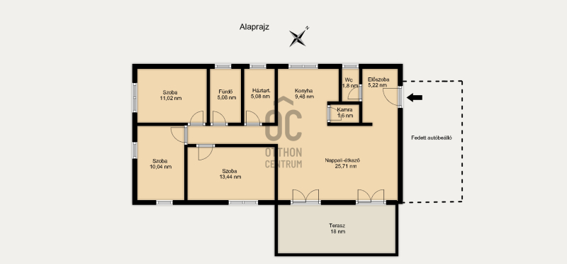 * 94,1 nm hasznos alapterület + 18 nm-es pergolával fedett terasz