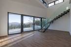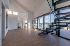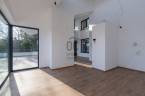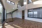 Az alsó szinten egy világos, tágas nappali–konyha–étkező tér kapott helyet, amely ideális mind a hétköznapokhoz, mind vendégek fogadásához. Innen több terasz is közvetlenül elérhető, így a kinti és benti terek szinte összeolvadnak.