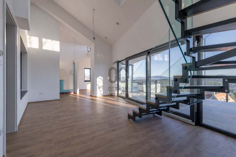 A lakás nettó 103 m²-es (bruttó 124 m²) belső tere nagyvonalú és átgondolt, amelyhez három terasz kapcsolódik, összesen 64 m² alapterülettel. A teraszok és az óriási üvegfelületek miatt a természet folyamatosan jelen van – reggel madárcsicsergéssel indul a nap, este a panoráma nyugtató látványával zárul.
