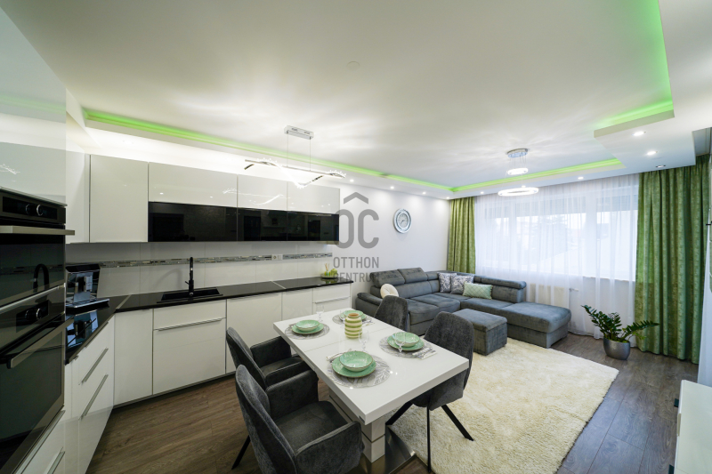 - teljesen gépesített konyha: Whirlpool beépített hűtő, sütő, mikro, mosogatógép, indukciós főzőlap