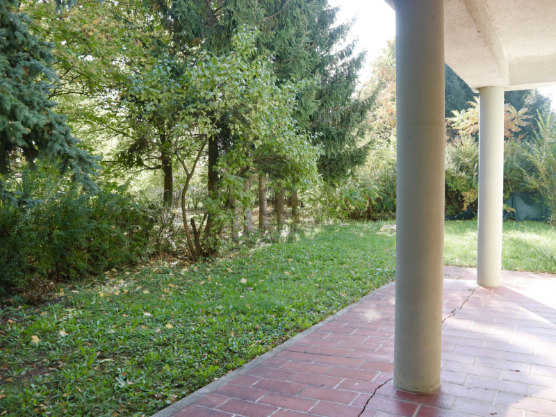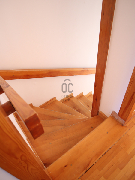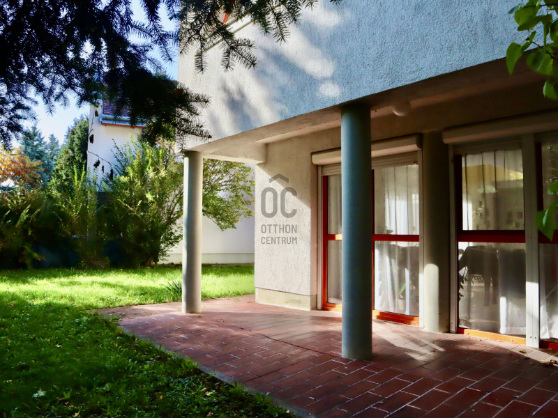 A lakás földszintjén előszoba, konyha, étkező, nappali, egy hálószoba, egy kisebb fürdőszoba, kazánház, kamra és tárolóhelyiségek kaptak helyet. A nappaliból és az étkezőből jutunk a két teraszra, onnan pedig a kizárólagos használati joggal rendelkező, jól szeparált, 542 nm-es parkosított kertbe.