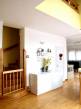 Szép kivitelű, kényelmes lépcső vezet az emeletre, ahol 5 hálószoba, 2 fürdőszoba, egy gardróbszoba van, valamint a folyosón beépített szekrény szolgálja a tárolási lehetőséget. A galéria jellegű folyosóról beláthatjuk a díjnyertes tervezésnek köszönhető izgalmas, napfényes tereket.