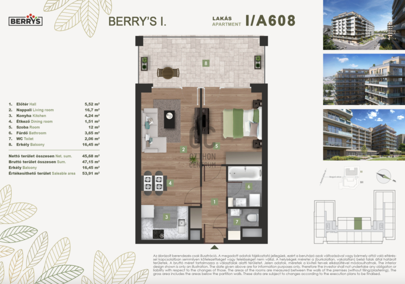 A gyönyörű kilátás nyugalma a városi nyüzsgés harmóniájával. A Berry’s minden lakásához tartozik loggia, erkély, vagy terasz!