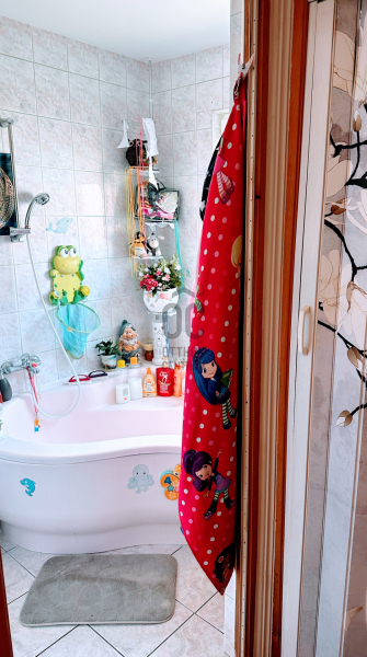 A fürdőszobában egy sarokkád helyezkedik el , a konyhából nyíló tárolóban pedig a mosógép, és a kazánház kapott helyet.