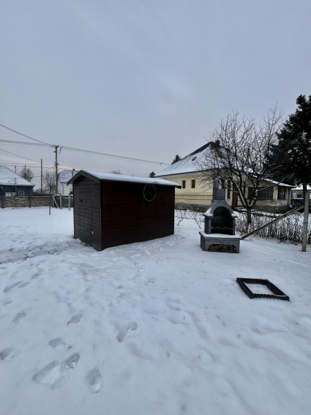 * A házhoz tartozik egy 906 nm-es telek, amely lehetőséget ad a szabadban való pihenésre és a gyerekek biztonságos játékára.