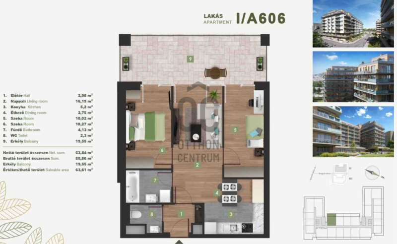 A gyönyörű kilátás nyugalma a városi nyüzsgés harmóniájával. A Berry’s minden lakásához tartozik loggia, erkély, vagy terasz!