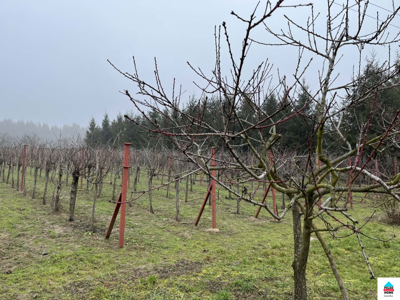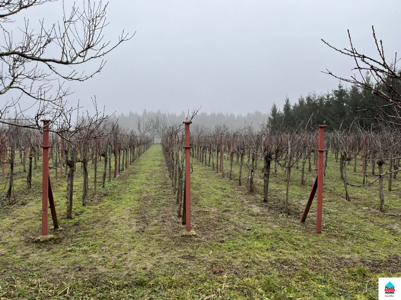1000 tőke szőlő (csemege és borszőlő) kb 40 termő gyümölcsfa (alma, barack, körte, cseresznye, meggy, dió stb). Egész évben megközelíthető aszfalt útról, áram megy át a telken, vezetékes viz 50m-en belül! A terület beépíthetősége 3%!