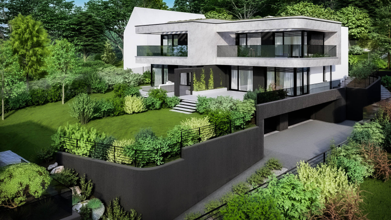 A telken 8 ikervilla kerül felépítésre, melyek mindegyikéhez sajáthasználatú kertrész valamint akár 3 autó parkoltatására alkalmas saját használatú önálló garázs is tartozik.