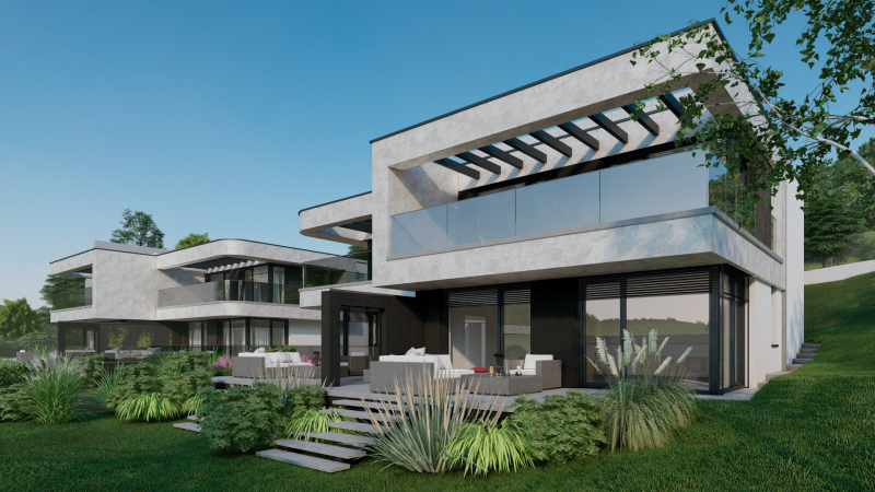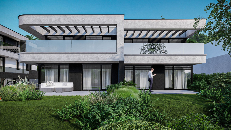 A telken 8 ikervilla kerül felépítésre, melyek mindegyikéhez sajáthasználatú kertrész valamint akár 3 autó parkoltatására alkalmas saját használatú önálló garázs is tartozik.