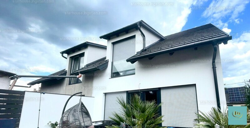 Bp. 3.kerület, Csillaghegyen, kifejezetten csendes utcában, kiváló közlekedésnél, Csillaghegy Duna felőli oldalán ,csendes családi házas övezetben eladó egy nappali-amerikai konyhás, saját, szeparált kerttel rendelkező nappali + 3 szobás ( a garázs átalakítható egy 4. szobává) , igényes kialakítású ikerfél, 20 m2-es terasszal garázzsal.