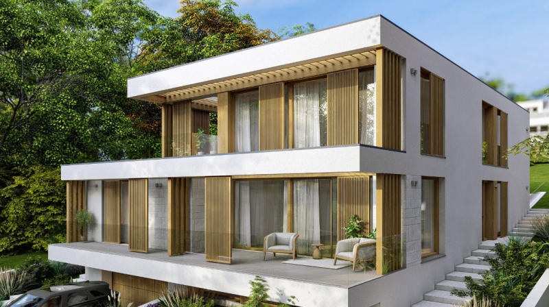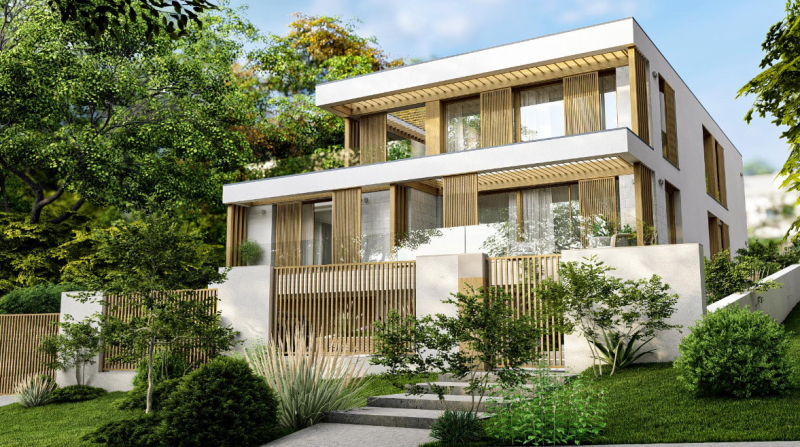 ELVEHETETLEN PANORÁMÁS öröklakás, nagy saját kertrésszel, Ürömhegy legexkluzívabb részén, újépítésű 3 lakásos társasházban.