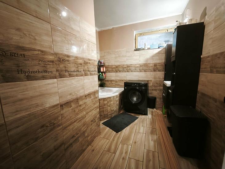 Szuterén: szoba, konyha + étkező, kádas fürdőszoba + mellékhelyiség, szerelőaknás garázs.