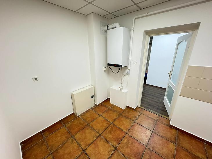 Az irodában korszerű víz és villanyhálózat került kialakításra. Sötétítővel felszerelt, műanyag keretes, thermo üveges nyílászárókat építettek be. A fűtésről kombi cirkó gondoskodik, átalánydíja: 10.000.- Ft. Minden helyiségben található légkondicionáló.