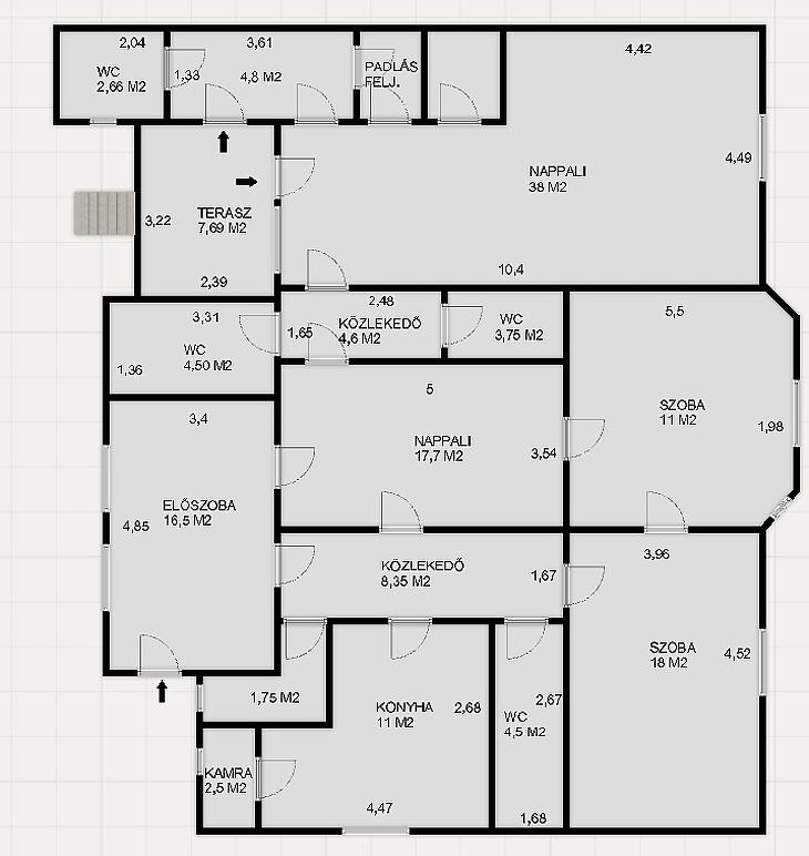 Mivel 2 bejárattal rendelkezik, igény esetén akár 2 generációssá is alakítható. Tágas nappali, 3 szoba, konyha, 2 fürdőszoba, több mellékhelyiség, közlekedő, kamra áll rendelkezésre.