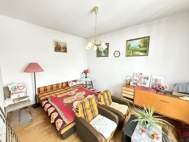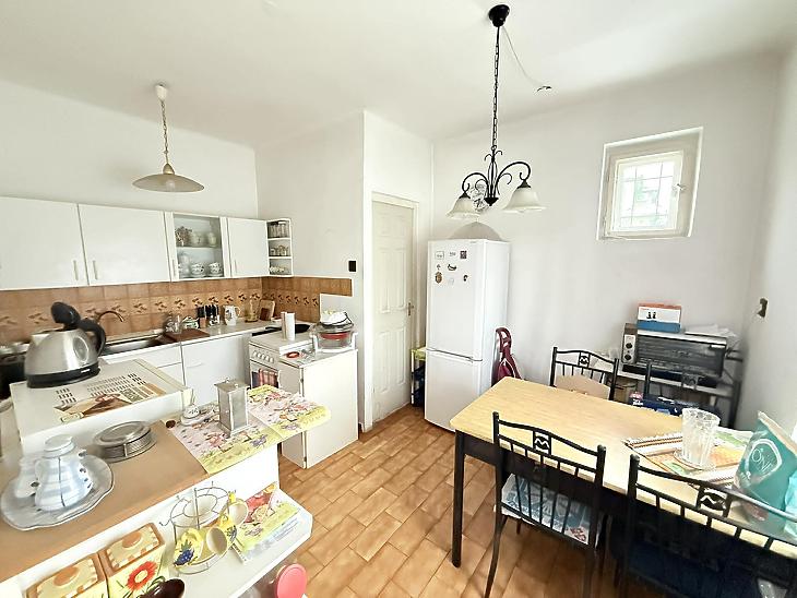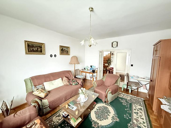 Az ingatlan praktikus elrendezésű a földszinten tágas, világos nappali, külön konyha–étkező és spejz található.
