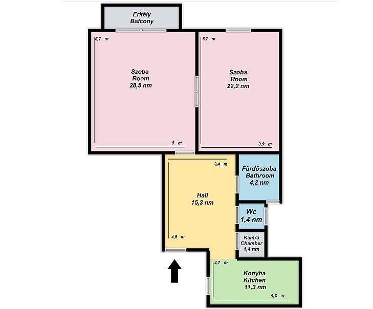 A lakás elrendezése praktikus, a terek világosak és barátságosak, a keleti fekvésnek köszönhetően reggeli napsütésben különösen hangulatos.