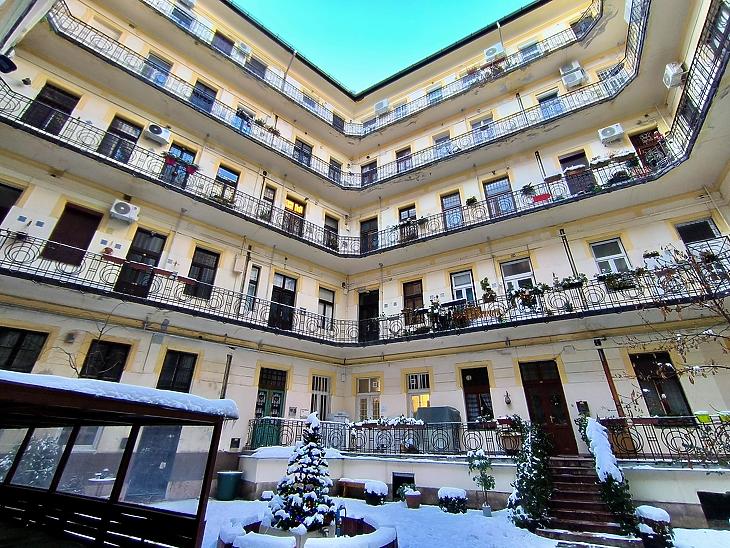 Az ingatlan ablakai utcára és udvarra is néznek, így egyszerre nyújtanak városi hangulatot és nyugodt kilátást. Praktikus elrendezésének köszönhetően a lakás tágas, jól élhető terekkel rendelkezik, így ideális választás lehet akár saját otthonnak, akár befektetésnek.