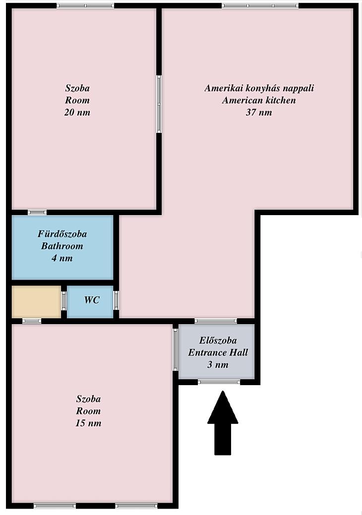 A lakás legnagyobb értéke a kiváló alaprajzi adottság, amely számos átalakítási lehetőséget rejt magában.