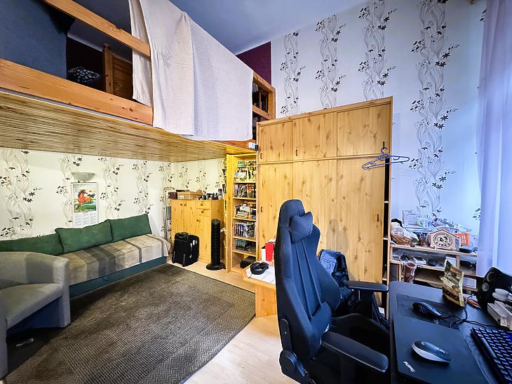 A galéria külön szintet ad a lakásnak, ideális alvórésznek, dolgozósaroknak vagy extra tárolásra, így az alsó tér szabadon és kényelmesen használható.