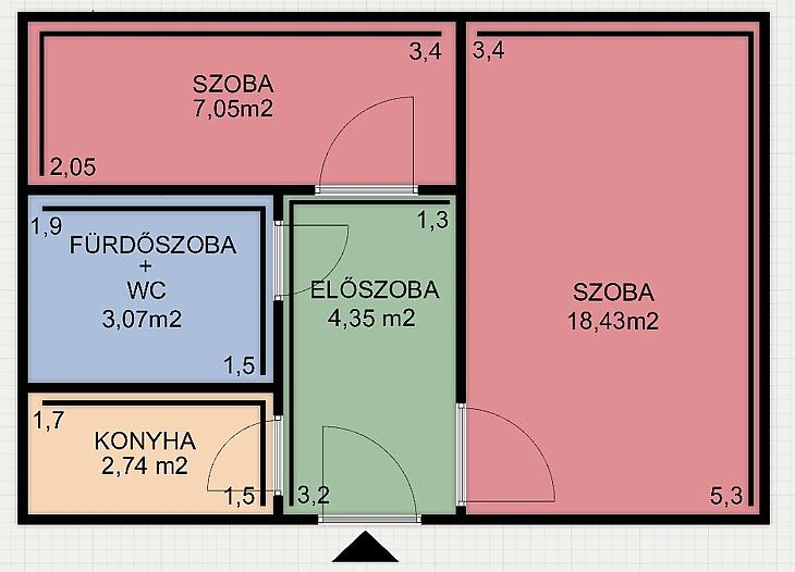 A konyha és a fürdőszoba átlagos állapotú, a konyhabútor a vételár részét képezi.