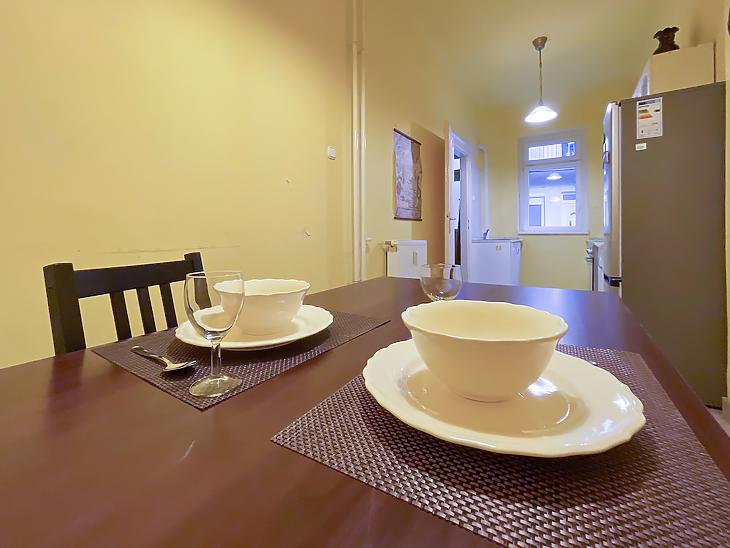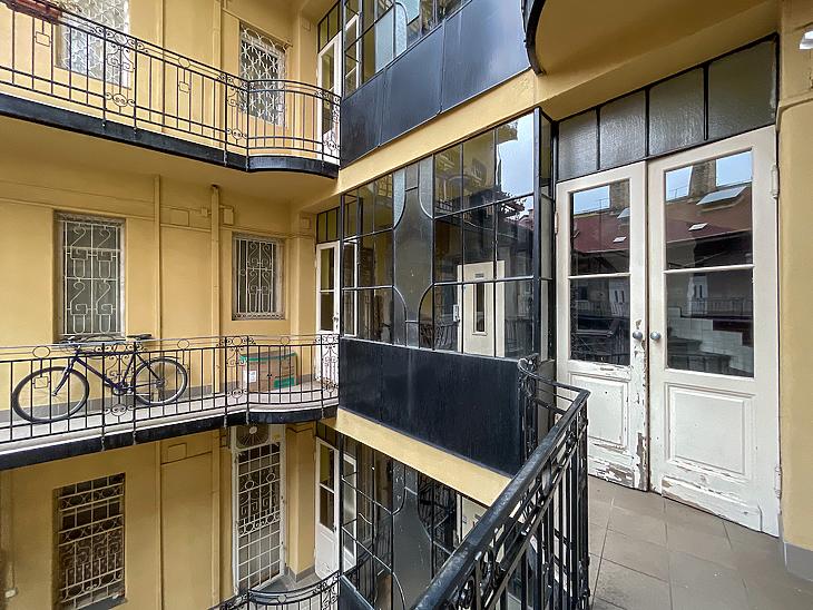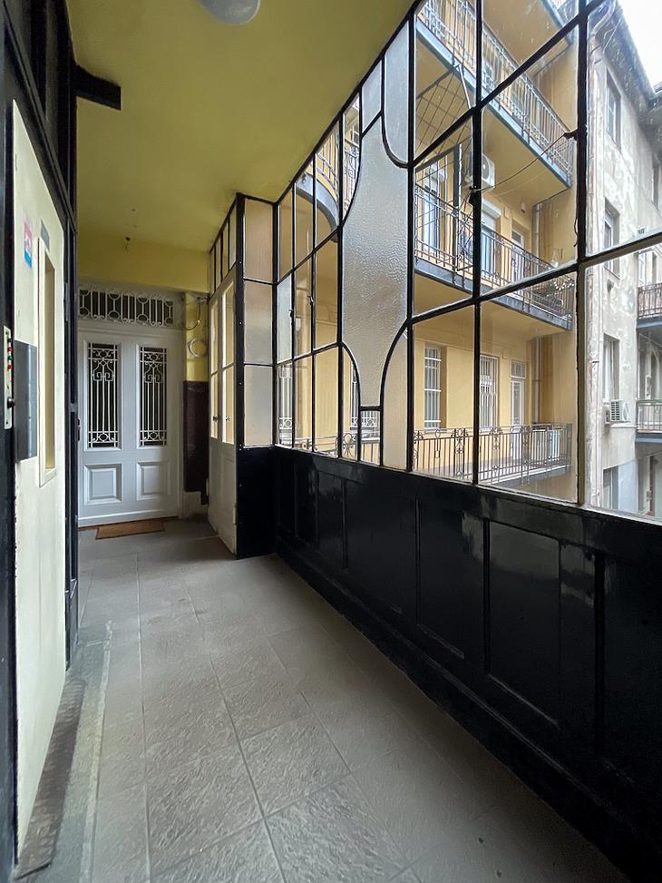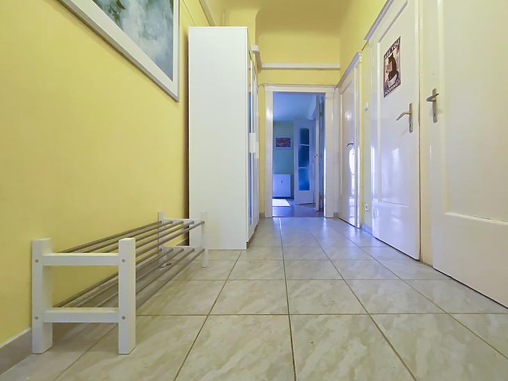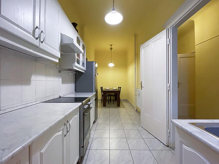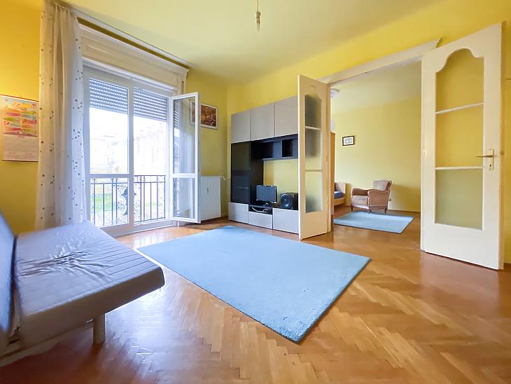 Palotanegyedben, a közkedvelt Gutenberg téren egy világos és tágas lakás eladó egy századfordulós liftes társasház emeletén.