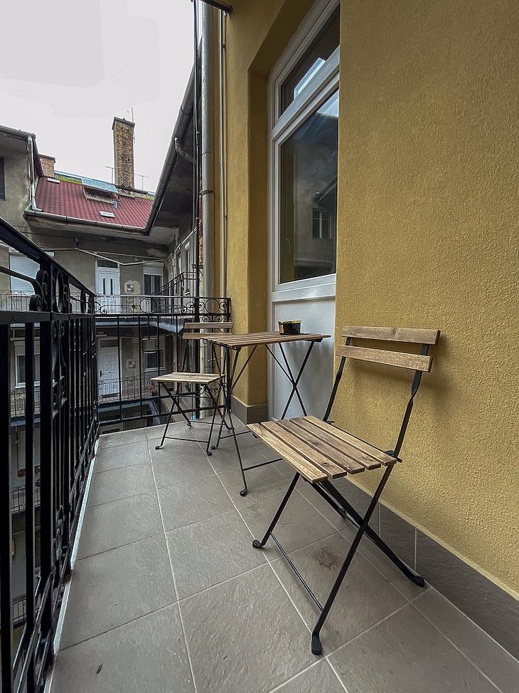 Az ingatlan házközponti fűtéssel, radiátoros hőleadással rendelkezik. A szobák franciaerkélyesek, utcai nézetűek. A lakás a függőfolyosón utolsóként helyezkedik el, ezzel némi plusz használati teret biztosítva a lakás tulajdonosának.