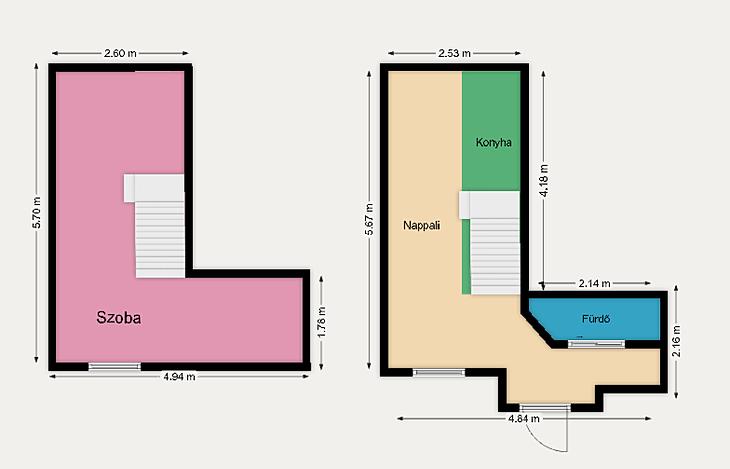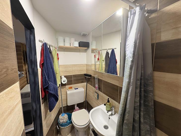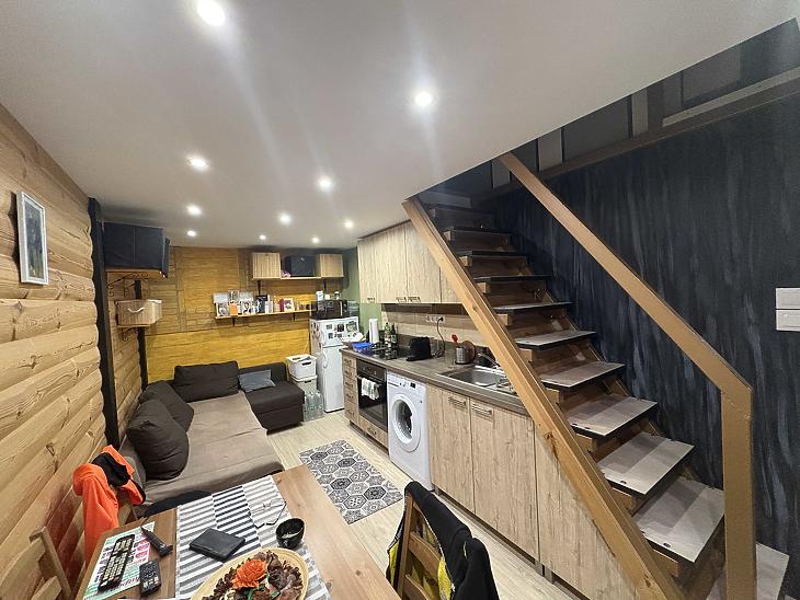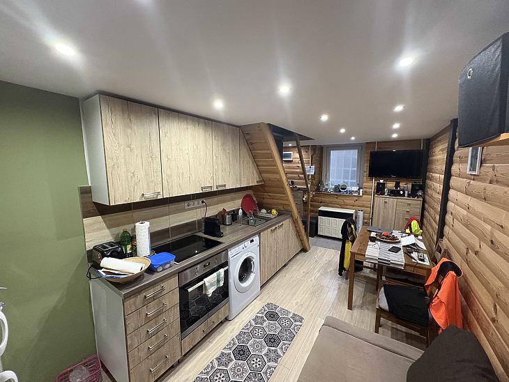 Az ingatlan 19 m² alapterületű, amelyet egy 17 m²-es, teljes belmagasságú állógaléria egészít ki – így a hasznos tér kényelmesen megnövekszik. A lakás okosan kialakított: a galérián tágas hálórész, a földszinten pedig nappali, konyha és zuhanyzós fürdőszoba található. A konyha teljesen gépesített, modern háztartási gépekkel felszerelt.