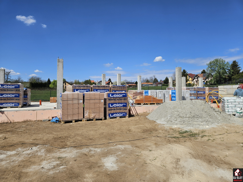 A lakóparkban 5 db 1. emeletes ház épül. Az első 3 épületben már eladásra került minden lakás, és most kezdődött a 4. épület értékesítése (és építése).