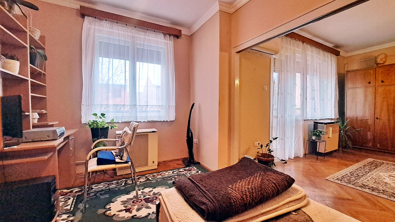 Időseknek kimondottan előnyös ez az ingatlan, hiszen földszintes, erkélyes és néhány lépés csak a kórház, az SZTK és a gyógyszertár és az unokáknak is van egy külön szobájuk.
