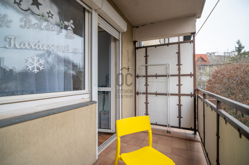 Erkélye egy csöndes belső udvarra néz, ami DK-i tájolású.