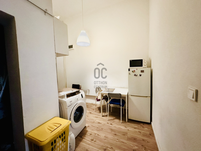 Az elrendezés magában foglal egy konyhát, egy kádas fürdőszobát, valamint a galériás megoldásnak köszönhetően elkülöníthető nappali és hálórészt. Az ablakok egy csendes, zöld belső udvarra néznek, nyugodt lakókörnyezetet biztosítva a belvárosi elhelyezkedés ellenére.