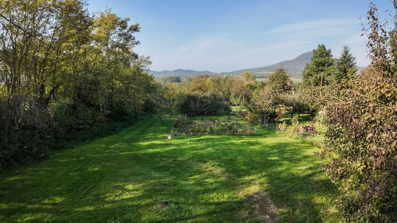 A telken kis kert, és többféle gyümölcsfa is megtalálható.
