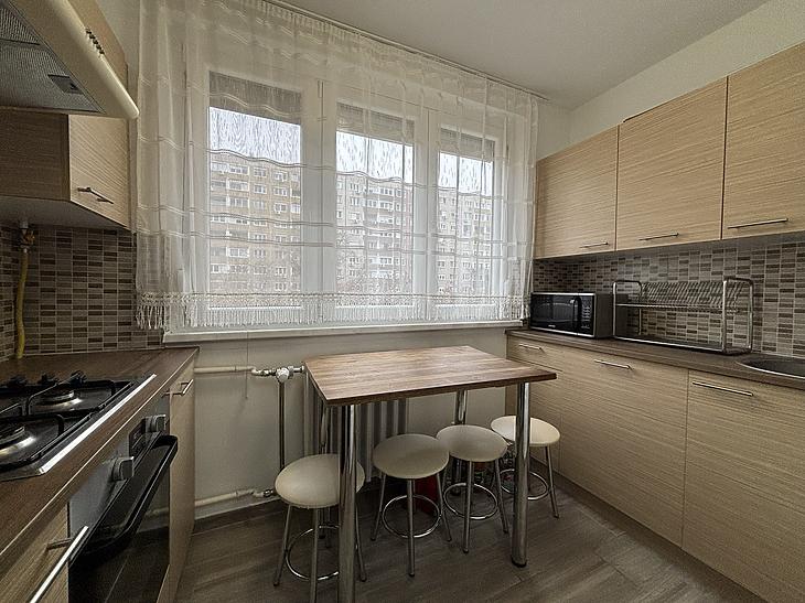 A lakás egy 10 emeletes panelház 3. emeletén található, nyugati fekvésének köszönhetően világos, délutánonként kifejezetten kellemes fényviszonyokkal.