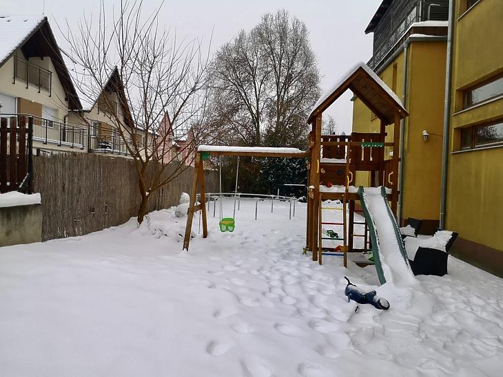 A gyermekek számára a társasház közös kertjében kialakított játszótér biztosít gondtalan kikapcsolódási lehetőséget.