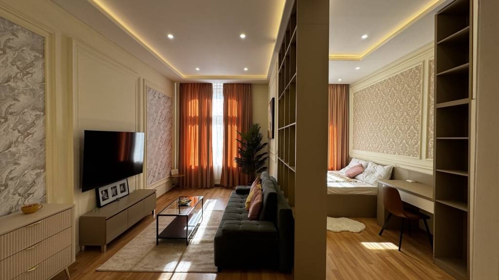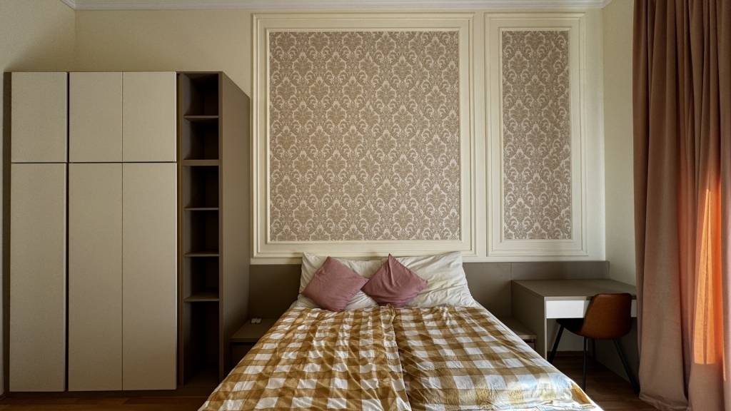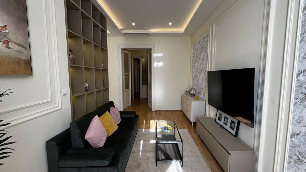 During the renovation, the apartment received new, modern interiors. In addition to the living room, the bright 87 m² apartment includes 3 bedrooms and 2 bathrooms.