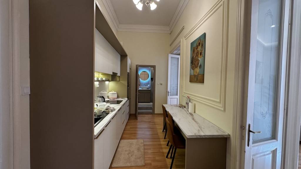 Eladó kiváló lokációval egy frissen felújított, utcai nézetű lakás a Rákóczi úton.