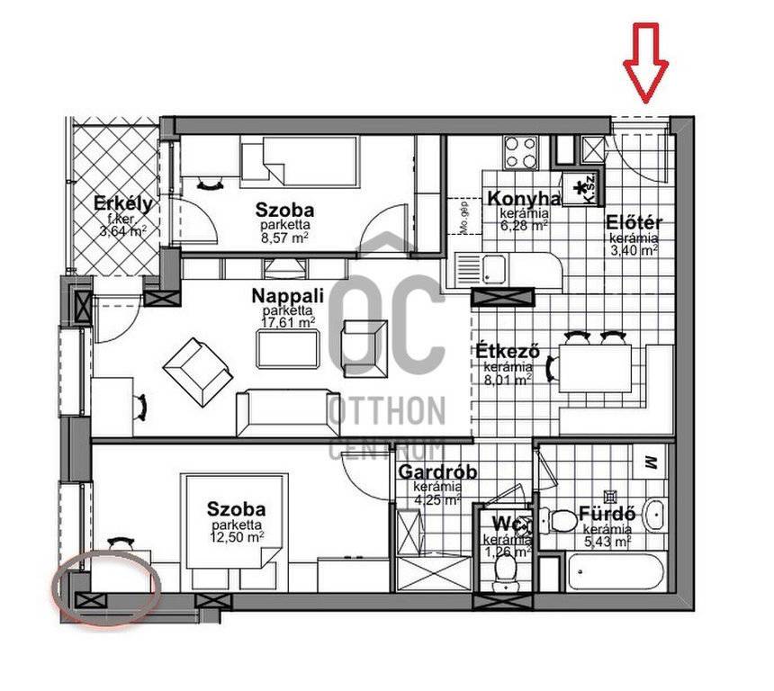 - Nappali + 2 hálószoba (nappaliból és az egyik hálóból kijárással az erkélyre)