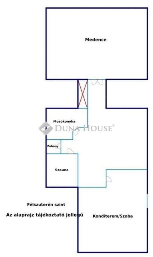 Wellness szint: fűthető, ellenáramoltatós medence, szauna, konditerem