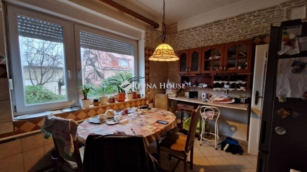 Eladó a XVIII. Szemeretelepen egy 110 nm-es, három szintes, nappali+két hálószobás, rendezett, jól karbantartott, cirkós fűtéses, szerkezetileg kifogástalan állapotban lévő ikerház, egy 320 nm-es összközműves telekkel.Telek:Teljesen összközműves, jogilag rendezett, teljesen leválasztott, külön mérőórás. A telken, fedetlen kocsibeálló található két autó számára, valamint egy 32 nm-es konyhás, fürdőszobás kis garzon lakás, teljesen lakható állapotra kialakítva.Épület:Az ikerház kiválóan alá lett pincézve, mely csont száraz állapotban van, így gyakorlatilag bármilyen tárolásra alkalmas. Régen egy kisebb fitnessz terem volt, ma már tároló funkciót lát el.Az alsó szinten található a nappali és a tágas ablakos konyha, valamit egy külön fürdőszoba, a felsőszinten pedig a két hálószoba és szinten egy külön fürdőszoba kapott helyet.Finanszírozás:Az ingatlan tehermentes, jogilag rendezett, így akár a 3%-os banki támogatással is megvásárolható.Műszaki:A ház 1974-ben épült, de folyamatosan épült, szépült.A tető a 2000-es évek elején újították fel teljesen, a nyílászárókat is, valamint a külső szigetelést is. 2025-ben kapott egy esztétikai felújítást, ahol a teljes szanitereket kicserélték, valamit festést is kapott.A fűtést és a melegvízet egy cirkó kazán biztosítja, mely minden évben karban van tartva. A melegvízet pedig egy 80l-es bojler szolgáltatja.Környék, közlekedés:Az ingatlan csendes, kertvárosias környezetben helyezkedik el, rendezett utcákkal és sok zöldfelülettel. A mindennapi bevásárlás kényelmesen megoldható, a közelben kisebb üzletek, pékség, gyógyszertár, valamint nagyobb áruházak és bevásárlóközpontok is elérhetők. Tömegközlekedéssel több buszjárat biztosít gyors kapcsolatot a KÖKI Terminál, a metró és a belváros irányába. Autóval néhány perc alatt elérhetők a főbb közlekedési útvonalak, így a város bármely pontja könnyen megközelíthető. A környék nyugodt, biztonságos, kifejezetten kedvelt családok és fiatal párok körében a jó infrastruktúra és az élhető környezet miatt.