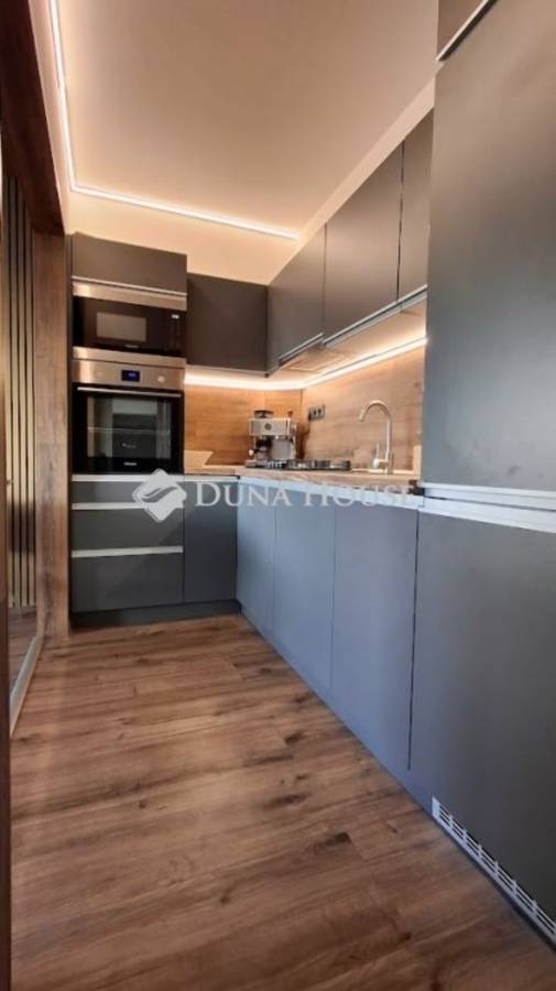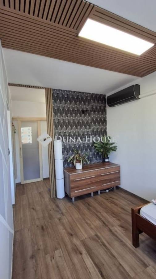 Eladó Zuglóban, a Füredi lakótelepen, egy panelprogramos ház 6. emeletén egy teljeskörűen felújított, 1,5 szobás, 46 m²-es lakás.Az ingatlan elosztása ideális: egybenyitott nappali és konyha, valamint egy hálószoba és a hozzá kapcsolódó gardrób alkotja. A WC és a fürdőszoba mind az előtérből, mind a gardrób felől megközelíthető. A modern kialakításnak és a minőségi anyagoknak köszönhetően a terek kinyíltak, a lakás szellős és letisztult formát öltött.Az ingatlan 2025-ben teljes körű műszaki és esztétikai felújításon esett át. Az elektromos hálózatot rézkábelekre cserélték, új, kétrétegű üvegezéssel ellátott, redőnyös, bukó-nyíló műanyag ablakokat, valamint biztonsági bejárati ajtót építettek be. A lakás új burkolatokat kapott, a falak megújultak, a hangulatos világításról pedig egyedi fa dekorációs elemekbe integrált mennyezeti lámpák gondoskodnak. Kiépítésre került klíma is, mely mindkét szobát hűti. A konyha és a fürdőszoba jó minőségű anyagokból, modern stílusban készült el. A konyha beépített gépekkel felszerelt, melyek a vételár részét képezik.A hatodik emeleti, nyugati fekvés egész évben kiváló fényviszonyokat és szép panorámát garantál. Az ingatlan 1/1 tulajdonú és tehermentes.A társasház szigetelt, részt vett a panelprogramban, állapota rendezett. A lépcsőházban két lift található, a parkolás pedig közvetlenül a ház előtt megoldott.A környék nyugodt, zöldfelületekben bővelkedik. A közelben minden szolgáltatás és bevásárlási lehetőség megtalálható, az Örs vezér tere közelsége miatt pedig a tömegközlekedési ellátottság kitűnő.