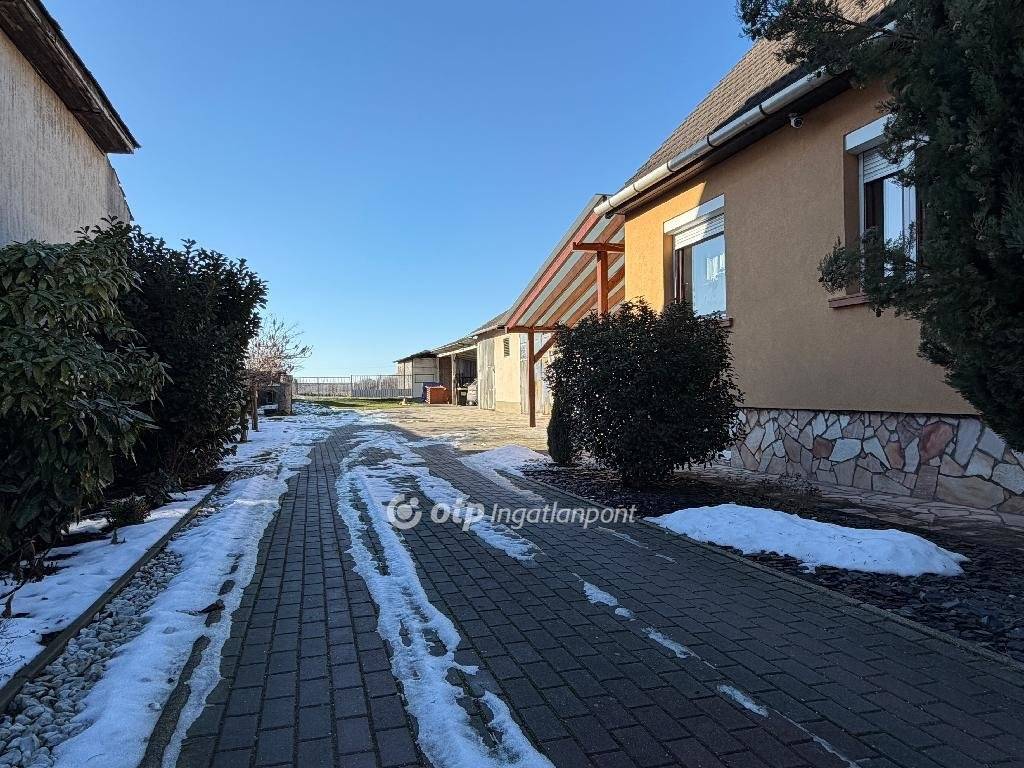 Az ingatlan egy 1440 m2-es, teljesen bekerített telken helyezkedik el, amely gyümölcsfákkal is beültetett, gondozott kerttel rendelkezik. A telek adottságai és a melléképületek miatt a ház vállalkozás céljára is kiválóan alkalmas. A telken található egy 70 m2-es, téglaépítésű melléképület Bramac cserépfedéssel, benne két garázzsal és egy műhellyel, valamint egy 90 m2-es, magas belterű raktárépület, amely ideális lehet műhelynek, raktárnak vagy hobbi célokra. A lakóházhoz közvetlenül kapcsolódó terasz kellemes pihenőhelyet biztosít.
